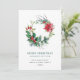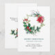 Tarjeta de vacaciones de Saludo de Navidad con corona de Nochebuena y acebo festiva.