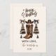 Saddle up for a festive holiday with this stylish Western Christmas design. Featuring elegant cowboy boots, a hat, and trees topped with coquette bows, this artwork perfectly blends rustic charm with feminine flair. Ideal for country Christmas parties, barn celebrations, or cozy Southern gatherings. Personalize the text to make it uniquely yours.