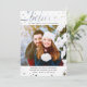 Este divertido diseño de vacaciones combina un tema tradicional con un moderno efecto de texto — tu foto determina el color de la tipografía de escritura "Believe", así como los destellos y copos de nieve! Cambiar la imagen, cambiar el esquema de color! Es divertido, ¿verdad? #BELIEVE #Navidades #Magic || Este estilo garantiza que la tipografía y los acentos impresos coincidan con la foto. La línea de texto debajo de "Believe" — "en la magia de la estación" — puede ser personalizada, como pueden ser los nombres (¡por supuesto!) y la fecha. ¡Asegúrate de mirar al revés también, donde tus nombres aparecen por segunda vez como el creador de este divertido saludo de vacaciones!