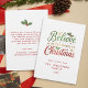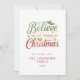 Comparte la alegría de la temporada con esta "Creer en la magia de los Navidades Script Simple Holiday Card". El diseño frontal presenta una tipografía festiva en verde, dorado y rojo rodeada de bayas huecas, copos de nieve dorados, estrellas brillantes y alegres puntos rojos y verdes para un mágico toque vacacional. Personalice con su texto personalizado, nombre de familia y Navidades año en tipografía en negrita roja sobre un fondo blanco crujiente. En la parte de atrás, agregue los deseos de su propia familia y los nombres de cada miembro de la familia para crear un conservador sincera y único. Una forma moderna, minimalista y elegante de extender la alegría de las vacaciones.