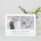 Esta elegante y sencilla tarjeta de Navidades incluye dos de sus fotos personales, y la palabra "creer" en el texto verde moderno. En la parte trasera hay un moderno diseño verde para unas vacaciones de diseño.