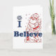 Creo en Santa con un Santa rojo en el fondo y las letras hechos en azul