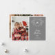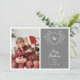 Difunde la alegría navideña con esta elegante y moderna tarjeta de Navidad que presenta un diseño de muérdago de arte de línea blanca enmarcando un clásico escudo fácilmente personalizable con tus iniciales sobre un fondo gris moderno. Agrega uno de tus retratos familiares favoritos al lado izquierdo de esta tarjeta de vacaciones y una segunda en el reverso.