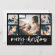 Esta sencilla y clásica tarjeta de felicitación navideña para familiares en blanco y negro presenta una tipografía moderna e informal que dice "Feliz Navidad", con una cuadrícula de cinco fotos en la parte frontal y una más en la parte trasera.