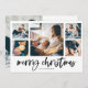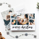 Esta sencilla y clásica tarjeta de felicitación navideña familiar en blanco y negro presenta una tipografía moderna e informal que dice "Feliz Navidad", con una cuadrícula de varias fotos de cinco fotos en la parte delantera y una más en la parte trasera.