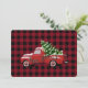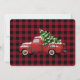 Tarjeta Festiva Cuadro Escocés Leñador Rojo Negro | Camión Rojo An