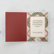 Diseño de saludo navideño clásico tradicional con una plantilla de una foto en forma de arco con un cálido patrón escocés rústico y acebo en tonos tierra rojos, verde oliva y beige. Incluye campos de texto editables para sus saludos personales. El interior cuenta con un fondo de cuadro escocés complementario, elemento de etiqueta en blanco y campos de texto adicionales con colores de fondo personalizables.
