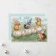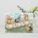 Atractivos y lindos pollitos vintage con elegantes avispas florales de Pascua encaramadas en huevos que escriben "Saludos de Pascua".