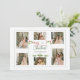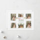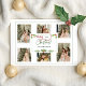 Este adorable saludo festivo incluye elegantes bordes delgados con adorables adornos de color de agua, saludo personalizado "Feliz Navidad" (el color de este gráfico se puede cambiar usando el editor de diseño), campos de texto editables y planilla de collage de seis fotos. La parte posterior incluye una única plantilla de foto, gráficos complementarios y campos de texto adicionales.