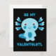 Cute azul kawaii axolotl preguntando - Sé mi Valentolotl. Diseño minimalista y divertido para el Día de San Valentín.