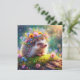 Tarjeta Festiva Cuidado Hedgehog Con Flor Tierra De Oro Pascua