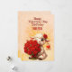 Una tarjeta de cumpleaños personalizada para alguien que está cumpliendo años el Día de San Valentín. Un lindo corderito blanco que presenta un gran ramo de rosas rojas en la parte delantera y un pequeño hámster haciendo lo mismo en la parte trasera.