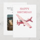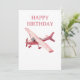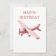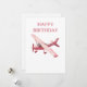 Tarjeta Festiva Cumpleaños divertido de acuarela de avión rosa Ces