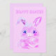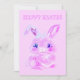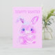 A tus niños de preescolar o kindergarten les encantará esta linda tarjeta de conejo rosa de Pascua. Para editar, haga clic en el botón de personalización. Este diseño contiene A.I.