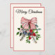 Tarjeta Festiva Custom, Bow Berries & Foliage Flat Christmas Card
