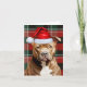 Tarjeta Festiva Cute Brown Pitbull Santa Dog Red Green Plaid
