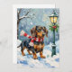 Tarjeta Festiva Cute Dachshund Puppy Cozy Winter Scarf Art