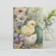 Tarjeta Festiva Cute Easter Chick Spring Wildflowers Watercolor