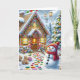 Cute Gingerbread House with Snowman Christmas Card, personalize the text to anything you want when you order