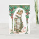 Es hora de celebrar las fiestas. Esta vintage impresión navideña representa a una linda niña y a un santo.