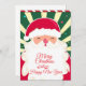 A vibrant, animated holiday card featuring a cheerful Santa Claus with a big, fluffy beard and a bright red suit. The camera slowly zooms in on Santa's smiling face, capturing the warmth of his expression. As the focus tightens, colorful rays of green and red burst out from behind him, creating a festive atmosphere. The text 'Merry Christmas and Happy New Year' elegantly appears, with playful animations that enhance the joyful mood. The scene is illuminated with soft, twinkling lights, evoking a cozy holiday spirit.