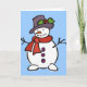 Tarjetas de Navidad lindo que tienen un hombre de nieve lindo en un fondo azul claro. Personalizar estas tarjetas de vacaciones con tus propios dichos especiales para hacerlas especiales para amigos y familia.