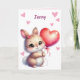 Here's an adorable Valentine's Day card for any special child. Your child's name is at the top, surrounded by pink hearts. A cute little bunny rabbit holds a heart shaped balloon. The inside of the card is pale pink, with another image of a bunny. There are four text fields in pink and lavender. All the text is easily customized to say anything you'd like, so you may easily customize this for a daughter, granddaughter, niece, or any child.