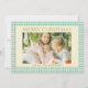 Envíe sus cálidos deseos de vacaciones con esta tarjeta de Navidades de inspiración vintage que presenta un acogedor diseño rústico y un clásico fondo de gingham verde. Perfecto para exhibir una preciada foto familiar, esta tarjeta combina el encanto atemporal con la elegancia festiva. Los tonos verdes y los tonos de gingham evocan un ambiente nostálgico y campestre, ideal para los amantes del estilo de una casa de campo durante las vacaciones. Diseñado para capturar el calor y el espíritu de la temporada, es una hermosa manera de compartir tu amor y alegría con amigos y familia.