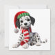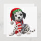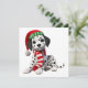 Difunde la alegría navideña con este elegante dálmata con gorro y bufanda de Santa. ¡Una tarjeta perfecta para los amantes de los perros esta Navidad!