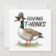 El gracioso diseño de Acción de Gracias "Giving Thonks" (Dando gracias) representa a una gansa de Canadá usando al gorra de un peregrino. Este ingenioso diseño de Acción de Gracias hace un buen regalo para cualquiera a quien le guste el Acción de Gracias, los pájaros, los gansos de Canadá y los juegos de Acción de Gracias.
