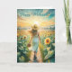 Una mujer caminando por un campo de girasoles. Adecuado para el Día de la Madre