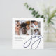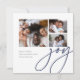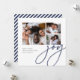 Share cheer with these colorful and modern holiday cards featuring 3 of your favorite photos (one square and two small horizontal or landscape oriented). "Joy" appears in casual, modern hand lettered script in a beautiful jewel toned navy blue shade. Personalize with your custom holiday greeting, family name, and the year along the bottom. An eyecatching choice in a unique rounded square shape for your Christmas 2021 greetings.