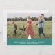 Tarjetas de navidad para 2020 en un moderno diseño verde azulado de pino verde, con la foto de tu familia y el mensaje - De nuestra burbuja a la tuya, Feliz Navidad y un saludable año nuevo! Añade tu foto y nombres. El texto puede cambiarse a la redacción que elija. Esta tarjeta se revierte a una almohadilla verde verde azulada y roja coordinada en el dorso de la tarjeta.