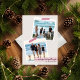 Una tarjeta de vacaciones minimalista y moderna adecuada para cualquier persona. La tarjeta cuenta con dos ranuras para fotos cuadradas desfasadas "pegadas" con cinta washi de rayas diagonales rojas y blancas sobre un fondo taupe neutro. Un patrón de rayas diagonales rojas y blancas festivas llena el reverso. Personalízala con tu propio saludo y nombre, con más opciones para agregar texto o fotos en la parte posterior.