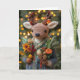 Envíe saludos de temporada a sus amigos y familia con esta deliciosa tarjeta de venado lana. Sostienen flores festivas, bayas y cañas de pino mientras las luces del árbol de Navidad se tambalean detrás de ellas.