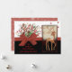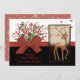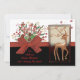 Disfruta de esta hermosa tarjeta de Navidades pintada a mano que puedes imprimir y/o descargar y enviar a tu familia o parientes. Tiene un ciervo lindo. El fondo es negro con texto personalizado y un arco rojo en el centro que separa el fondo negro de la parte superior blanca, con una floral bellamente hecha sobre el arco. Actualiza fácilmente el saludo para que sea tuyo.