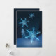 Esta tarjeta de vacaciones con arte de copos de nieve presenta copos de nieve intrincados y delicados, cada uno creado de manera única con precisión geométrica. El fondo de la tarjeta es un suave tono invernal: azules helados, blancos y plateados, que realzan la elegancia del diseño. Los acentos brillantes, los gradientes sutiles o los efectos brillantes dan a los copos de nieve una apariencia mágica y helada, evocando la serena belleza del invierno. La tarjeta emana un ambiente festivo y tranquilo, perfecto para difundir la alegría de la temporada.