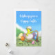 La chica recién nacida desea a la lombriz una feliz Pascua.