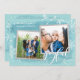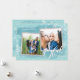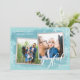 ¡Difunde alegría y felicidad este año con una tarjeta que aparece! Con un capricho moderno de caligrafía que dice "alegre" sobre un fondo azul texturado y acentuado con copos de nieve blancos y nevadas. Personalizar tus fotos, nombres de familia y nombres individuales. En la parte posterior, hay un patrón de copos de nieve blancos y estrellas que coincide con la parte delantera. marcos falsos de Relieve metalizado plateado y resalta tus fotos
