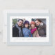 Enmarcada en copos de nieve, esta tarjeta de Navidad de una sola foto es la forma perfecta de enviar buenos deseos esta Navidad. Con un elegante guión moderno que dice "Los mejores deseos", esta tarjeta también tiene espacio para texto personalizado que puede incluir nombres y año. La parte posterior es un destello de tormenta de nieve que coincide con un cielo invernal azul claro. Esta tarjeta de foto horizontal es ideal para saludos que celebran una variedad de fiestas de invierno. También disponible como diseño vertical.