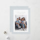 Enmarcada en copos de nieve, esta tarjeta de Navidad de una sola foto es la forma perfecta de enviar buenos deseos esta Navidad. Con un elegante guión moderno "Los mejores deseos", esta tarjeta también tiene espacio para texto personalizado que puede incluir nombres y año. La parte posterior es una ráfaga de nieve que coincide con un tono azul cielo invernal claro. Esta tarjeta de foto vertical es ideal para saludos que celebran una variedad de fiestas de invierno. También disponible como diseño vertical.