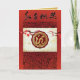 Diseño moderno y tradicional con recorte de papel de la Serpiente china dorada (imagen impresa) en forma redonda de color rojo oscuro sobre fondo caligráfico (ideograma Fu que significa suerte o fortuna) en tonos grises + flores rosadas de árboles de durazno. Diseño en tarjeta de felicitación vertical con textos para el Año Nuevo Lunar Chino de la Serpiente 2025 para personalizar sobre papel dorado texturizado (imagen impresa) como fondo en el interior. Puede cambiar fácilmente el texto (fuente, color, tamaño y posición) haciendo clic en el botón de personalización. Invitación cuadrada coincidente con texto para la celebración del Año Nuevo Chino, tarjeta postal de vacaciones y suministros para fiestas (próximamente). Perfecto para el Año Nuevo Chino de la Serpiente 2025. --------- "La serpiente (蛇) es la sexta del ciclo de doce años de animales que aparecen en el zodíaco