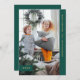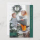 Estas tarjetas coloridas y modernas cuentan con un bar de color verde esmeralda al lado de la foto personal, y un pequeño cartel con el año añade un estilo adicional. El texto de color dorado dice "Feliz Navidad", y puedes agregar tu apellido.