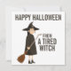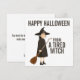 Tarjeta Festiva Día de Halloween Feliz Humor Bruja Blanco y Negro