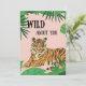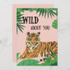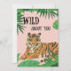 Tarjeta personalizada linda y divertida con una ilustración de un tigre naranja y un fondo rosa regalo perfecto para el Día de San Valentín. diseño que dice "Salvaje por ti" haciendo que estas tarjetas sean la forma perfecta de mostrar que te importa.