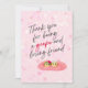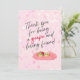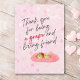 Expresa tu gratitud con esta encantadora tarjeta que presenta personajes de uva caprichosos y un sentido mensaje de agradecimiento. El suave fondo rosa y el diseño juguetón la hacen perfecta para mostrar aprecio a un amigo especial. Personal y memorable, es una forma encantadora de decir, “¡Gracias!” ¡Disfruta!