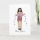 Mujer sosteniendo una cadena de corazones morados que dicen "te aman" tarjeta de felicitación. Ilustración de moda femenina del día de San Valentín en febrero. Tarjeta de diseño lindo y femenino para hijas, amigas o nietas. Agrega un nombre y un mensaje personal dentro.
