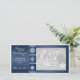 Desee sus amigos y familia buenas fiestas con esta tarjeta limpia, simple de la foto del navidad. Tres copos de nieve únicos descansan sobre un fondo azul limpio. Si usted está enviando tarjetas a los amigos, a la familia, o a los compañeros de trabajo, estos saludos de las estaciones tendrán siempre una recepción caliente del invierno. Añada su foto de familia preferida y modifique el texto para requisitos particulares para su propio tacto personal. ¡No olvide el franqueo a juego!