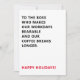 ¡Celebra a tu increíble jefe con un toque de humor esta temporada de fiestas! Nuestra tarjeta "Al jefe que hace que nuestros días de trabajo sean soportables y nuestro café se rompa más: ¡Felices Fiestas!" es la mezcla perfecta de gratitud y risas. Expresar aprecio por un jefe que trae alegría a la oficina, haciendo que tanto el trabajo como las pausas de café sean una delicia. ¡Eleva tus deseos de vacaciones con un toque de humor para un saludo festivo y memorable!