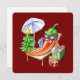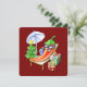 Aquí está mi dibujo a lápiz a color de mano libre de un gracioso personaje de una caricatura chili relajándose al sol junto a un árbol de navidad, regalos envueltos y una sombrilla. El arte añade un sabor picante a tus deseos de Feliz Navidad, que se combina favorablemente con el cálido trasfondo de esta carta de bienvenida de temporada cuadrada, de borde redondo y borgoñona. Atrévete a ser diferente y conjura una sonrisa en los labios del destinatario del correo.